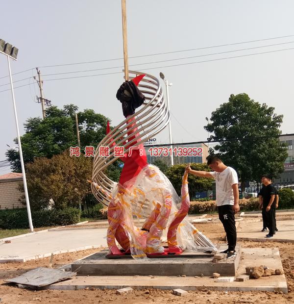 雕塑安裝地點(diǎn):水與火交融不銹鋼塑像是為河南湯陰縣消防隊(duì)制作,該款雕塑是消防隊(duì)形象主題雕塑,高度為4米,采用內(nèi)部鋼材骨架,外表不銹鋼板材,上面噴有汽車(chē)專(zhuān)用漆,為彩色不銹鋼雕塑。