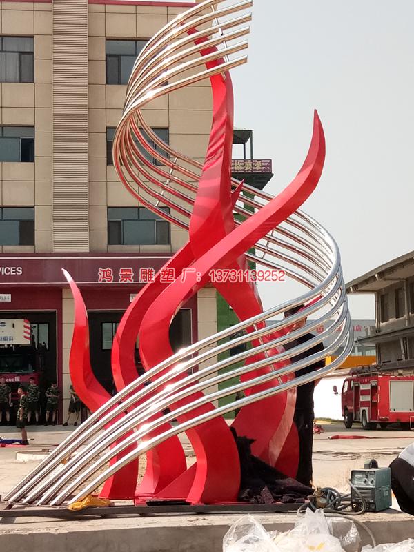 安裝工程:水與火交融不銹鋼塑像,消防隊(duì)4米高雕塑,不銹鋼雕塑運(yùn)輸