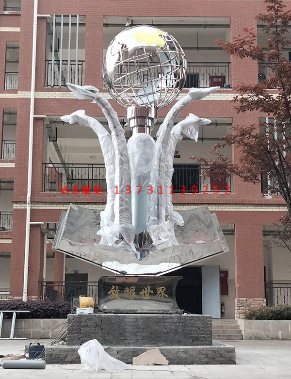校園不銹鋼雕塑顧名思義就是為特定的院校校設(shè)計制作的雕塑作品,它能夠裝飾、豐富和美化校園環(huán)境空間,豐富師生的精神生活,是校園文化建設(shè)中的重要組成部分,同時也是也能夠體現(xiàn)出一所院校文化狀態(tài)。一所校園即使歷史再悠久,建筑再壯觀,沒有優(yōu)秀的校園雕塑作品也是不完整的,好的校園不銹鋼雕塑可以反映出整所院校的審美傾向、文化意識形態(tài)和深厚的文化氣息。校園不銹鋼雕塑是物質(zhì)化了的精神載體,它是校園文化的載體,校園雕塑作為一種精神載體,它具有文字屬性,同樣體現(xiàn)文以載道的精神。每一座校園雕塑均蘊含有一定的道德追求,能對學(xué)生產(chǎn)生巨大的道德潛化作用,激發(fā)學(xué)生對道德原則、道德規(guī)范在情緒上的認同,產(chǎn)生共鳴,同時對道德理想、道德建構(gòu)產(chǎn)生向往之情。在這樣的環(huán)境中,在這樣的文化影響下,會自然而然地激勵學(xué)生積極進取、勇于創(chuàng)新。校園不銹鋼雕塑是校園環(huán)境的重要組成部分,不僅有美化校園環(huán)境的作用,還對后人有著更深的教育意義。鴻景不銹鋼雕塑廠家為遵義習(xí)水一中制作的放眼世界不銹鋼雕塑,雕塑高度為6米,采用不銹鋼板材制作,需要校園雕塑、園林景觀不銹鋼雕塑,歡迎來電咨詢。