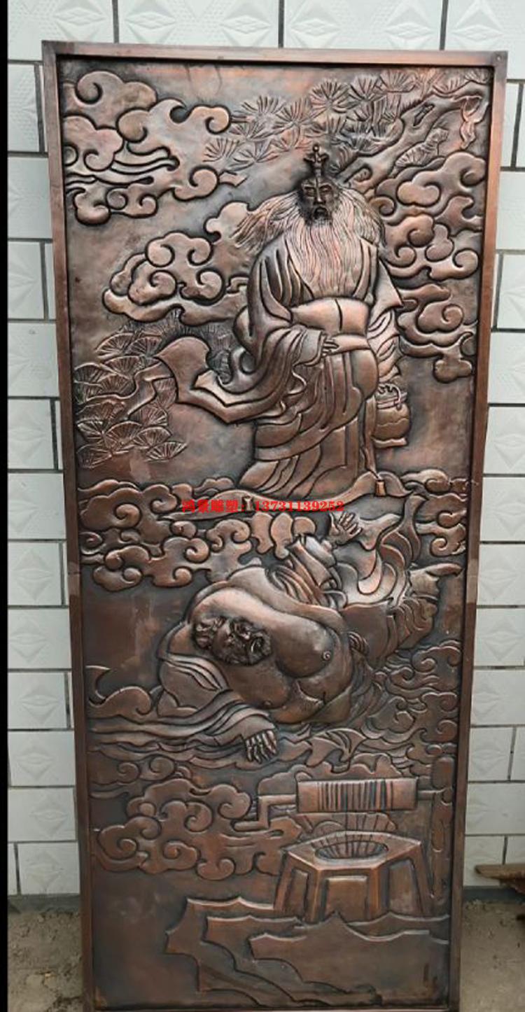 銅浮雕分為紅銅浮雕、黃銅浮雕和鍛銅浮雕。紅銅浮雕又稱純銅、紫銅。紅銅的延展性、導(dǎo)電性和耐腐蝕性很好,其中延展性是銅雕裝飾的重要特性。紅銅的熔點很高,不易鑄造,而良好的延展性彌補了這一缺點,因此能夠很容易地加工成各種造型圖案。黃銅浮雕簡單的說,也就是在黃銅浮雕表面通過我們的一些加工達到一些能夠展現(xiàn)與眾不同效果的銅雕,其中化學(xué)復(fù)古法用的較多,化學(xué)藥水常溫發(fā)酵氧化,在不損傷黃銅表面的同時而通過藥水化學(xué)反映而生成的一種黑色氧化物,后通過人工技術(shù)進行精細的表面處理而表現(xiàn)出多種古銅韻效果。鍛銅浮雕,是利用銅材料的延展性興起來得鏨刻工藝,是我國傳統(tǒng)手工藝百花中的一枝奇葩。