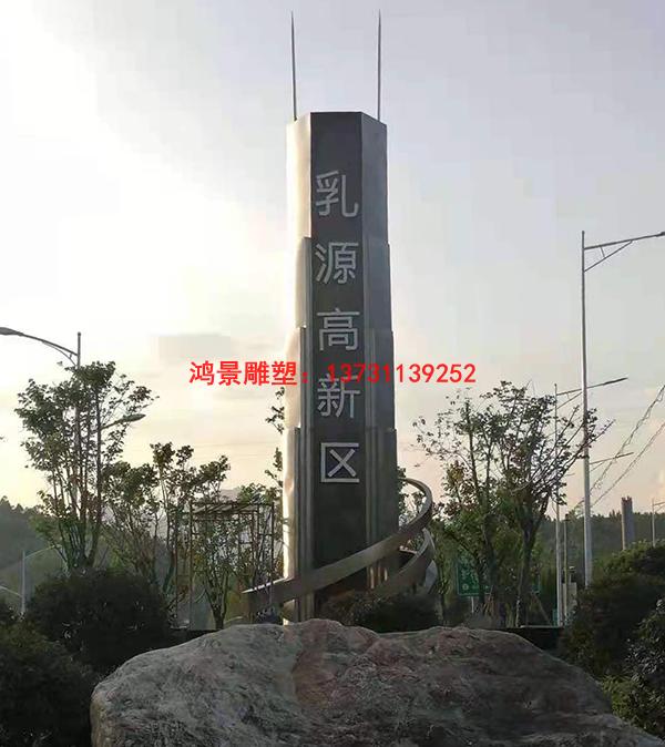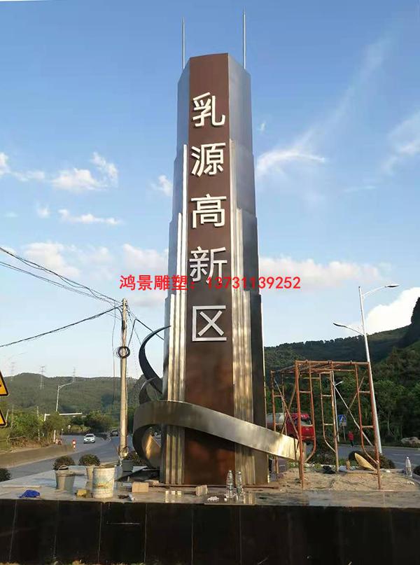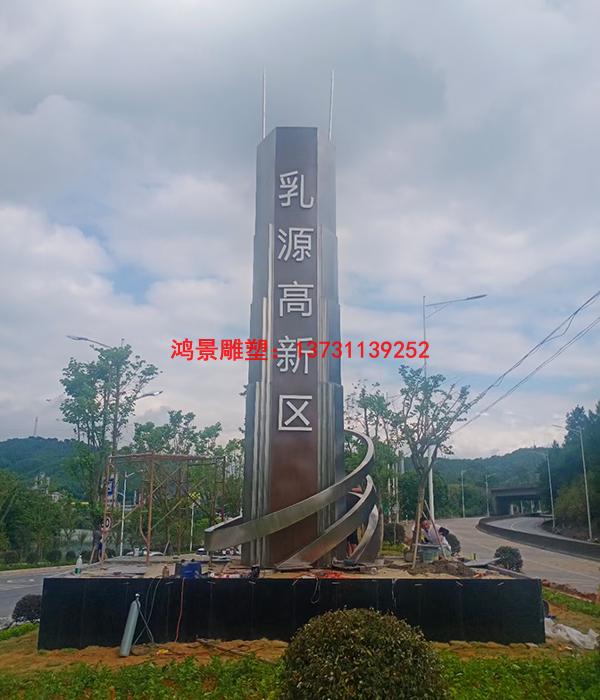 高速路口標(biāo)志性雕塑,不銹鋼市標(biāo)雕塑工程