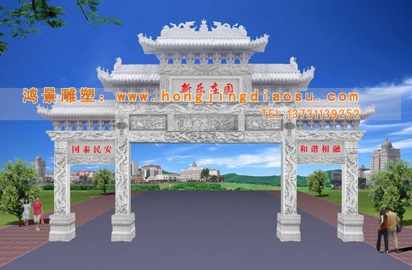 單門牌樓,石材牌樓雕塑,漢白玉牌