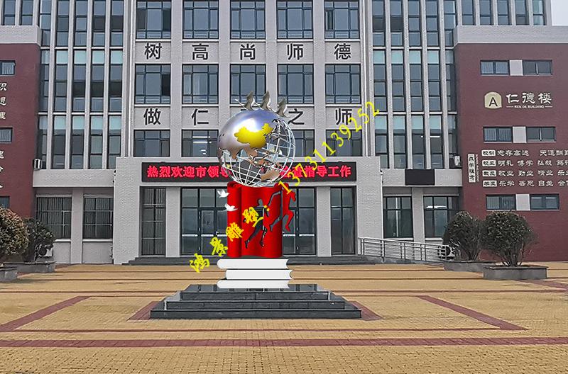 雕塑說明:雕塑整體采用不銹鋼材質(zhì)制作,外噴氟碳漆,雕塑下方由書本組成,書中鏤空造型寓意少年在奮斗拼搏中綻放光芒,用不懈的拼搏成就夢想。上方由地球儀組成,代表著要志存高遠(yuǎn),腳踏實地,讓成長的腳步更加堅定有力。